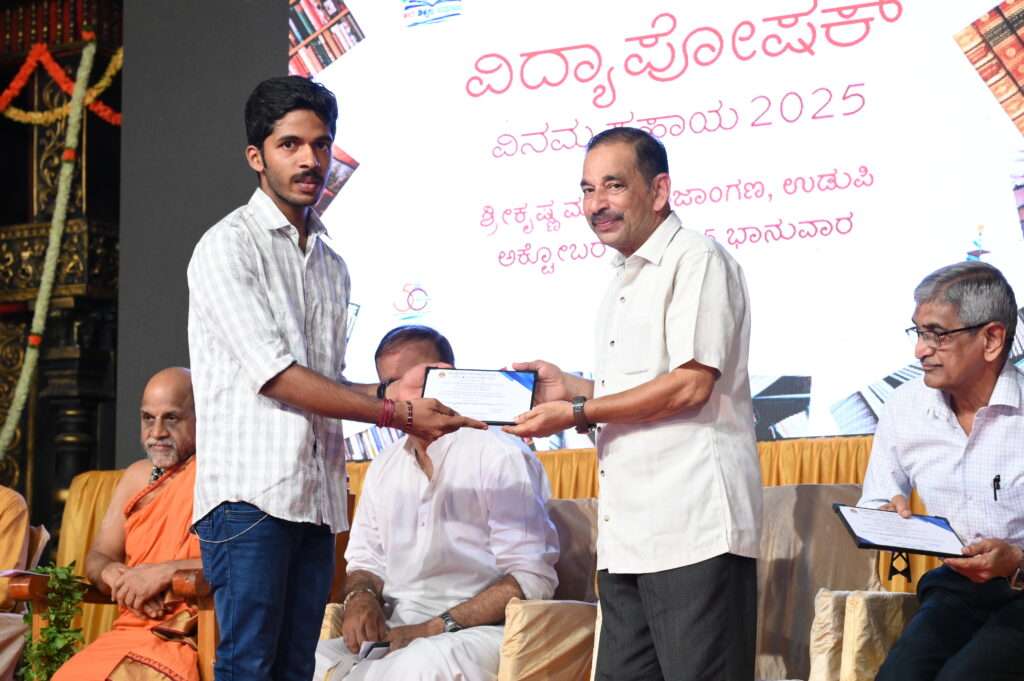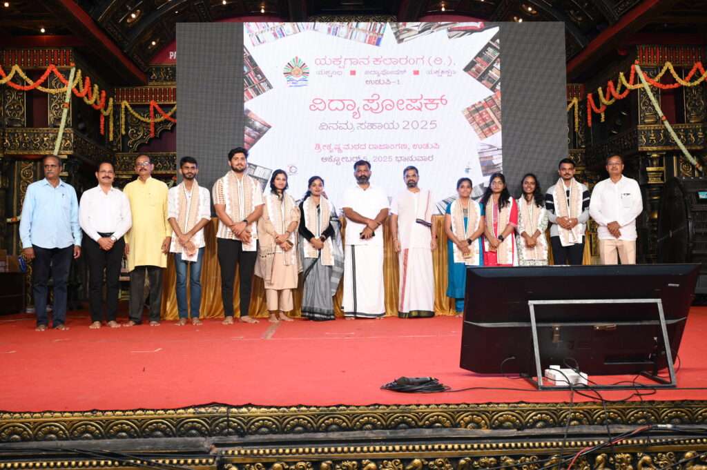 ಅಕ್ಟೋಬರ್ 05, 2025ರಂದು ಭಾನುವಾರ ಉಡುಪಿಯ ಶ್ರೀಕೃಷ್ಣ ಮಠದ ರಾಜಾಂಗಣದಲ್ಲಿ ಜರಗಿದ 21ನೆಯ ವರ್ಷದ ಯಕ್ಷಗಾನ ಕಲಾರಂಗದ ವಿದ್ಯಾಪೋಷಕ್ ವಿನಮ್ರ ಸಹಾಯಧನ ವಿತರಣಾ ಸಮಾರಂಭವನ್ನು ಪರ್ಯಾಯ ಶ್ರೀ ಪುತ್ತಿಗೆ ಮಠಾಧೀಶರಾದ ಶ್ರೀ ಶ್ರೀ ಸುಗುಣೇಂದ್ರತೀರ್ಥ ಶ್ರೀಪಾದರು ಉದ್ಘಾಟಿಸಿದರು. ಅಂಬಲಪಾಡಿ ದೇವಳದ ಧರ್ಮದರ್ಶಿಗಳಾದ ಡಾ. ನಿ. ಬೀ. ವಿಜಯ ಬಲ್ಲಾಳ್ ಶುಭಹಾರೈಸಿದರು. ಅಧ್ಯಕ್ಷತೆ ವಹಿಸಿದ್ದ ಮಣಿಪಾಲ ಮಾಹೆಯ ಸಹಕುಲಪತಿಗಳಾದ ಡಾ. ಎಚ್. ಎಸ್ ಬಲ್ಲಾಳ್ ಅªರು ಯಕ್ಷಗಾನ ಕಲಾರಂಗದ ನಿರಂತರ ಸಾಧನೆಯನ್ನು ಶ್ಲಾಘಿಸಿ, ಮಾಹೆ ಸದಾ ನಿಮ್ಮೊಂದಿಗಿದೆ. ನಿಮ್ಮ ಅಪೇಕ್ಷೆಯಂತೆ ನಮ್ಮ ವಿದ್ಯಾಸಂಸ್ಥೆಗಳಲ್ಲಿ ಅಧ್ಯಯನ ಮಾಡುತ್ತಿರುವ ವಿದ್ಯಾಪೋಷಕ್ ವಿದ್ಯಾರ್ಥಿಗಳ ಶುಲ್ಕದಲ್ಲಿ ರಿಯಾಯತಿ ನೀಡುವುದಾಗಿಯೂ, ವಿದ್ಯಾಪೋಷಕ್ ವಿದ್ಯಾರ್ಥಿಗಳ ಕುಟುಂಬದವರಿಗೆ ಮಣಿಪಾಲ ಮತ್ತು ಮಣಿಪಾಲ ಸಮೂಹದ ಕಸ್ತೂರ್ಬಾ ಆಸ್ಪತ್ರೆಗೆ ದಾಖಲಾದರೆ ತಲಾ ರೂ. 50000/-ದ ವರೆಗೆ ರಿಯಾಯತಿ ನೀಡುವುದಾಗಿ ಭರವಸೆ ನೀಡಿದರು. ಅಭ್ಯಾಗತರಾಗಿ ಭಾಗವಹಿಸಿದ್ದ ಶಾಸಕರುಗಳಾದ ಕಿರಣ್ಕುಮಾರ್ ಕೊಡ್ಗಿ, ಗುರುರಾಜ ಗಂಟಿಹೊಳೆ ಹಾಗೂ ಡಾ. ಜಿ. ಎಸ್. ಚಂದ್ರಶೇಖರ, ಡಾ. ಪಿ. ಎಸ್. ಗುರುಮೂರ್ತಿ, ಪಿ. ಸುರೇಶ್ ನಾಯಕ್, ಸಂತೋಷ್ ಎಂ. ಶೆಟ್ಟಿ, ಹರಿಯಪ್ಪ ಕೋಟ್ಯಾನ್, ಡಾ. ಎಂ. ಆರ್ ಹೆಗಡೆ, ಯೋಗೀಶ್ಚಂದ್ರಾಧರ್, ಯು. ವಿಶ್ವನಾಥ ಶೆಣೈ, ರಾಮ ಕೆ. ಶಿರೂರು, ಪಿ. ಸದಾನಂದ ಶೆಣೈ, ಲಕ್ಷ್ಮಣ ಬಿ. ಅಮೀನ್ ವಿದ್ಯಾರ್ಥಿಗಳನ್ನು ಉದ್ದೇಶಿಸಿ ಅಭಿಪ್ರೇರಕ ಮಾತುಗಳನ್ನಾಡಿದರು.